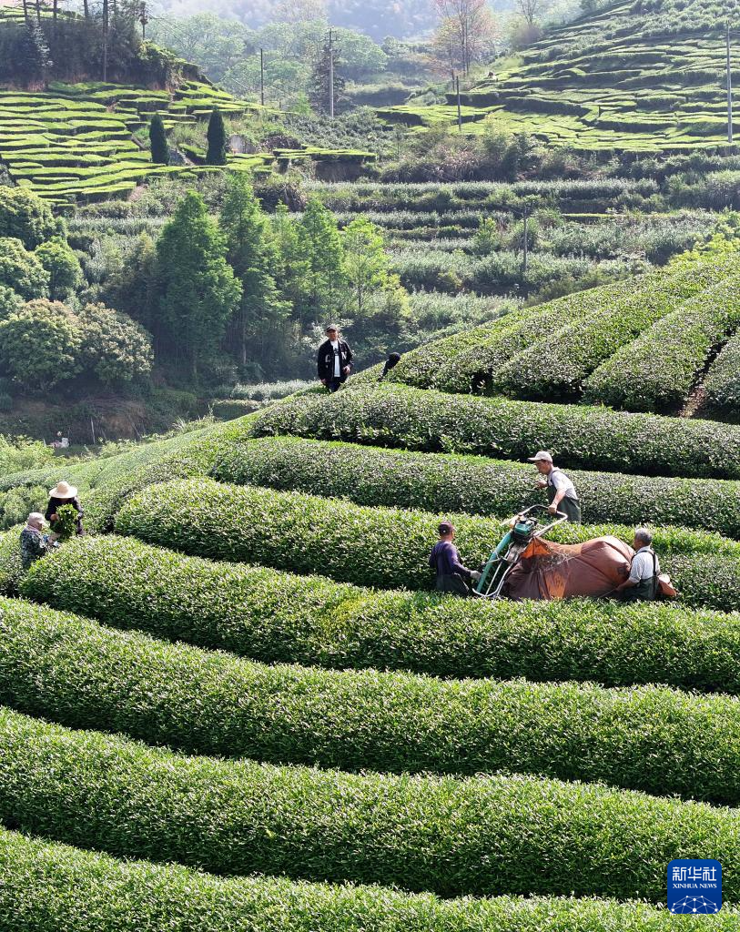 4月19日,村民在湖北省宣恩县万寨乡伍家台村一茶园里采摘谷雨茶。