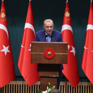 4月20日,在土耳其首都安卡拉总统府,土耳其总统埃尔多安在内阁会议结束后向全国发表电视讲话。