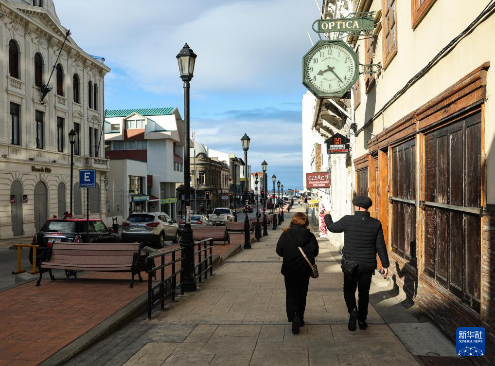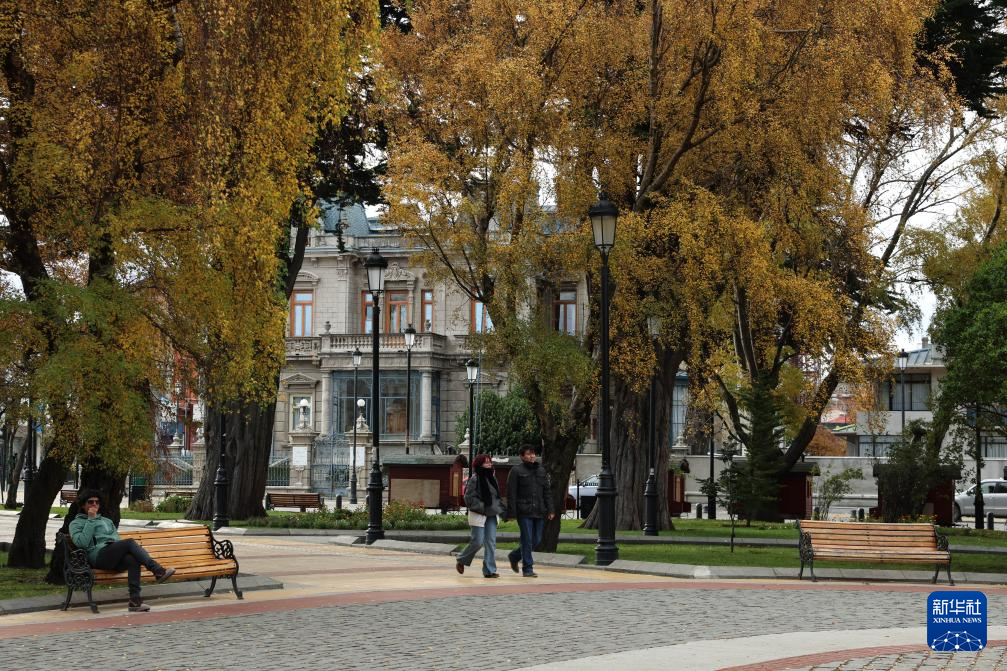 4月19日,人们走在智利南部蓬塔阿雷纳斯的街道上。