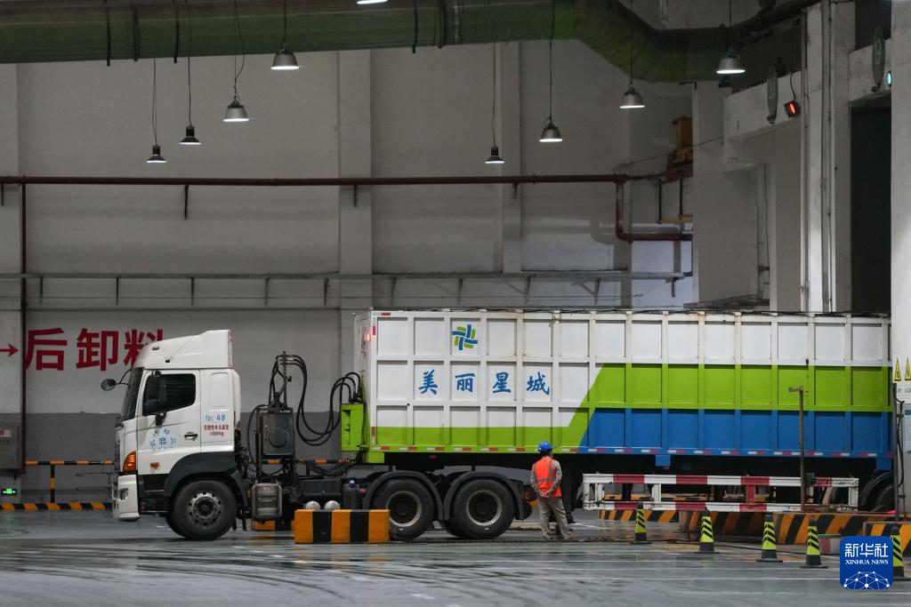 4月22日,在军信股份黑麋峰环保园区,转运车将垃圾倒入密闭垃圾仓。