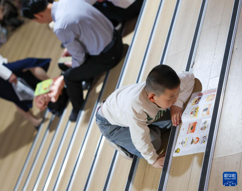 4月19日,市民在吉林长春一家书店玩手机游戏。