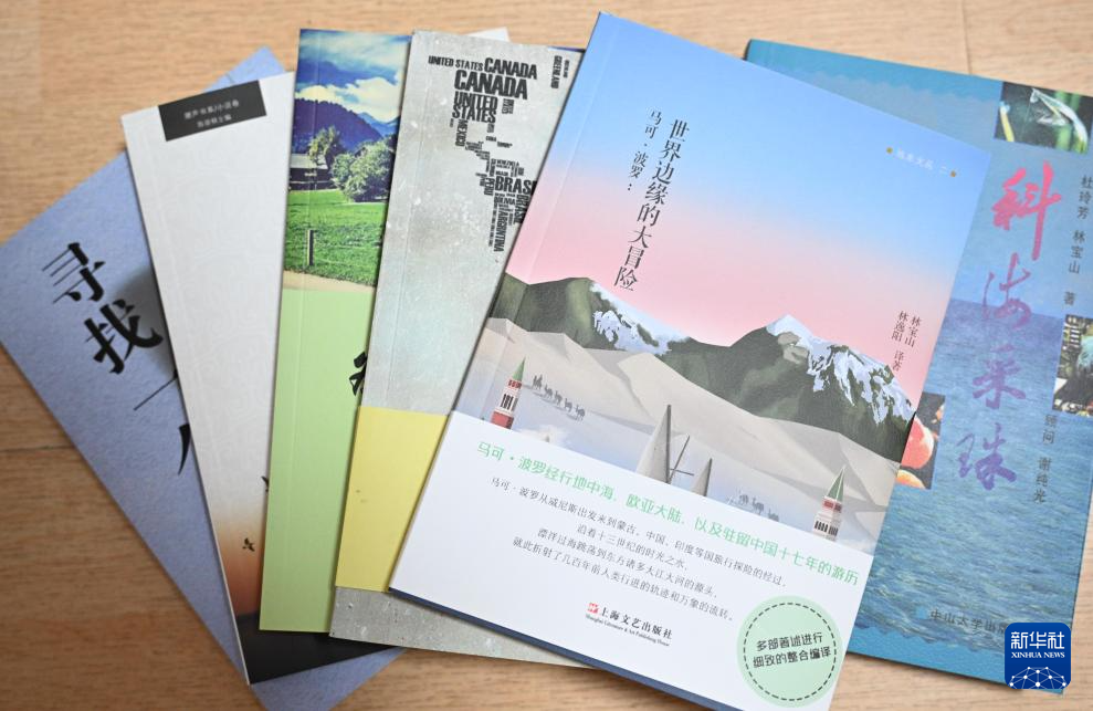 4月19日在林宝山家中拍摄的他出版的书籍。