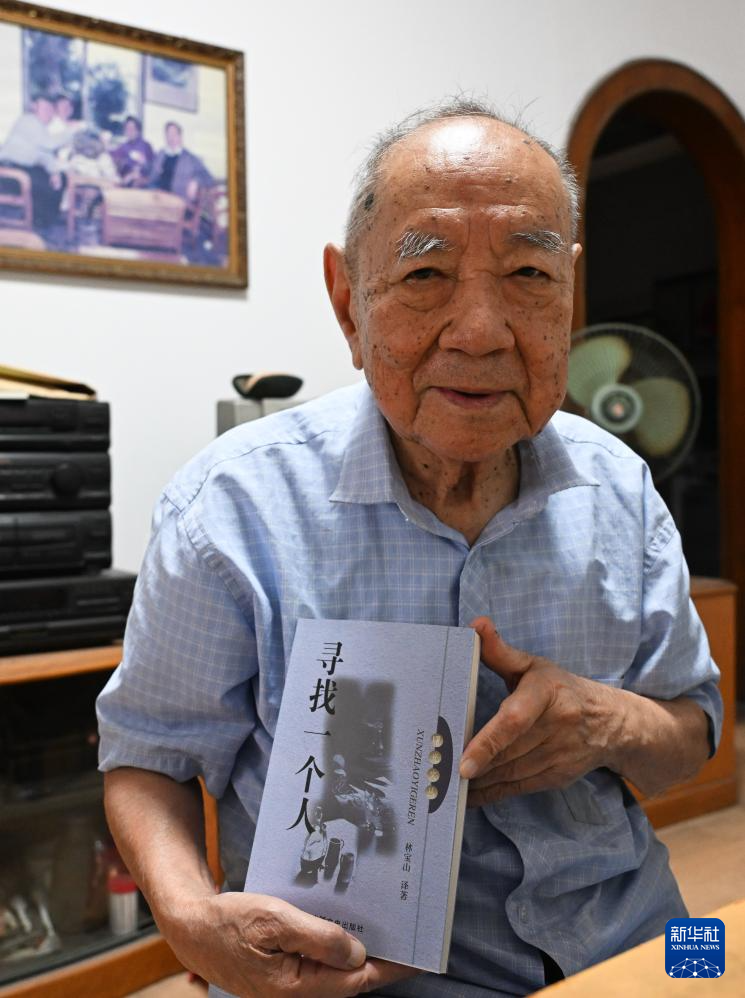 4月19日,林宝山在家中展示他出版的《寻找一个人》。