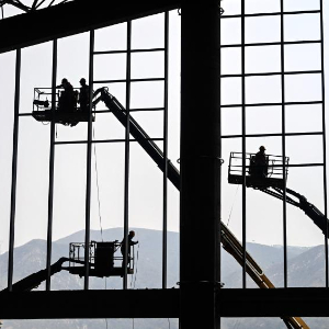 中铁十一局的施工队工人在焊接容县南站的屋顶钢结构(3月27日摄)。