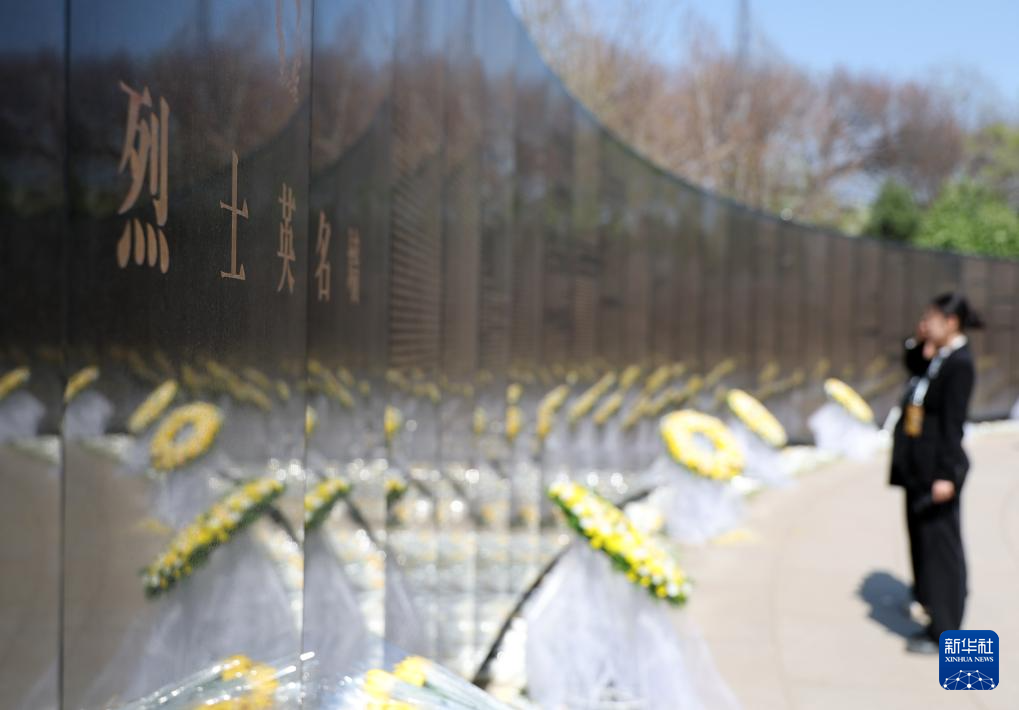 4月23日,在沈阳抗美援朝烈士陵园,人们向烈士敬献鲜花,并瞻仰烈士英名墙。