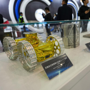 这是4月24日在航天科普展览上拍摄的月面自主智能微小机器人——“金蟾”。