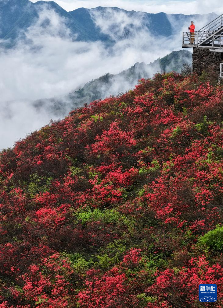 时下,多地野生杜鹃迎来盛花期,漫山杜鹃绚烂如霞,吸引不少游客前来赏花游玩。