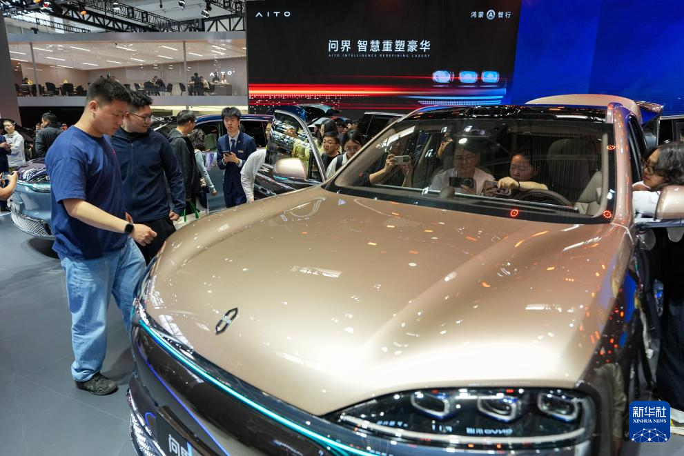 4月26日,在2026北京车展上,参观者参观“问界”系列车型。