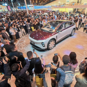 4月26日,在2026北京车展上,参观者在为车企提供自动驾驶技术的北京初速度科技有限公司展台参观。