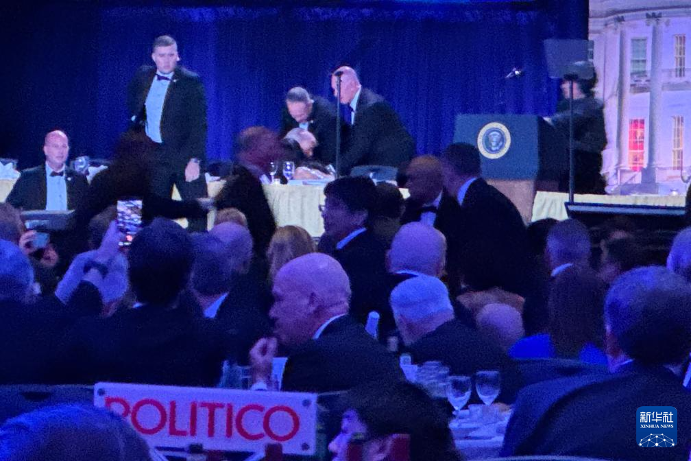 据美国媒体报道,美国总统特朗普参加白宫记者协会晚宴时,现场传出枪声,特朗普随后在安保人员护送下离开。