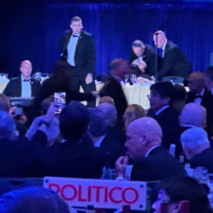 美国媒体4月25日援引白宫记者协会晚宴现场记者的话说,当晚的宴会上发生“安全事件”,一名嫌疑人已被拘捕。