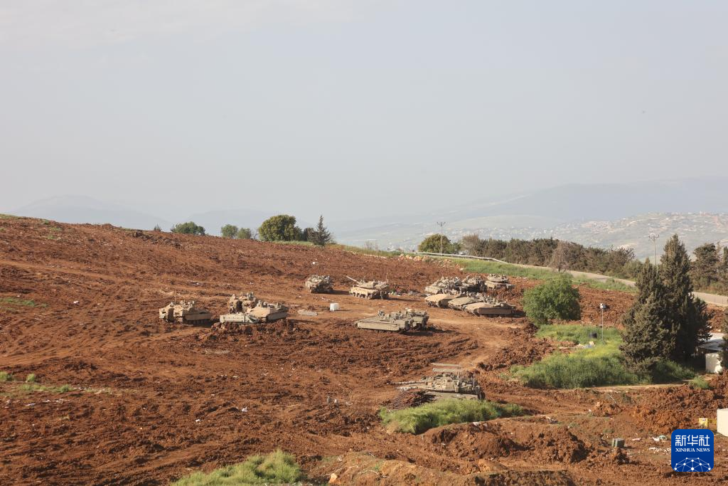 这是4月26日拍摄的集结在以黎边界以色列一侧的以军部队。