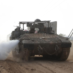 4月26日,以军车辆在黎巴嫩南部行驶。