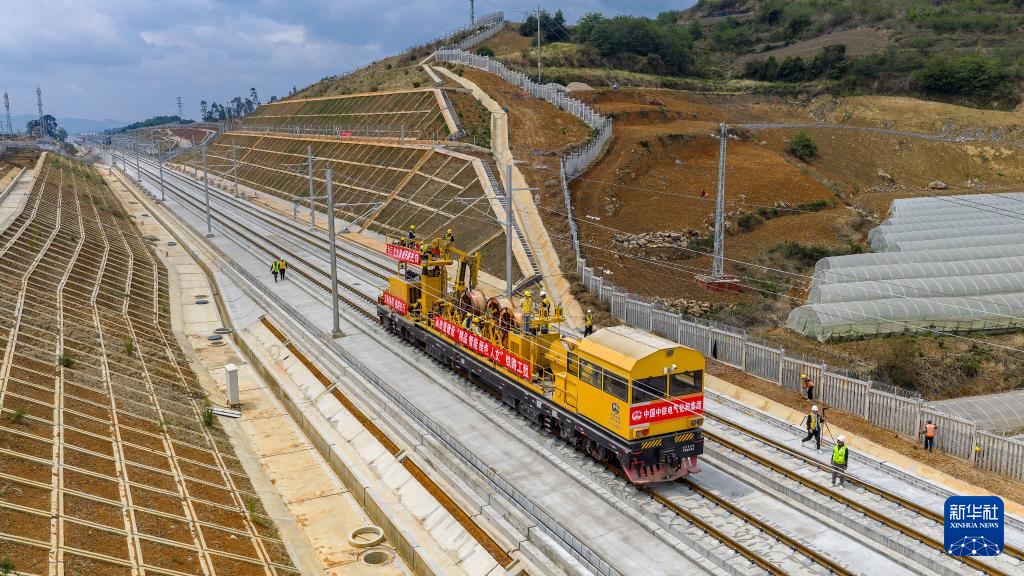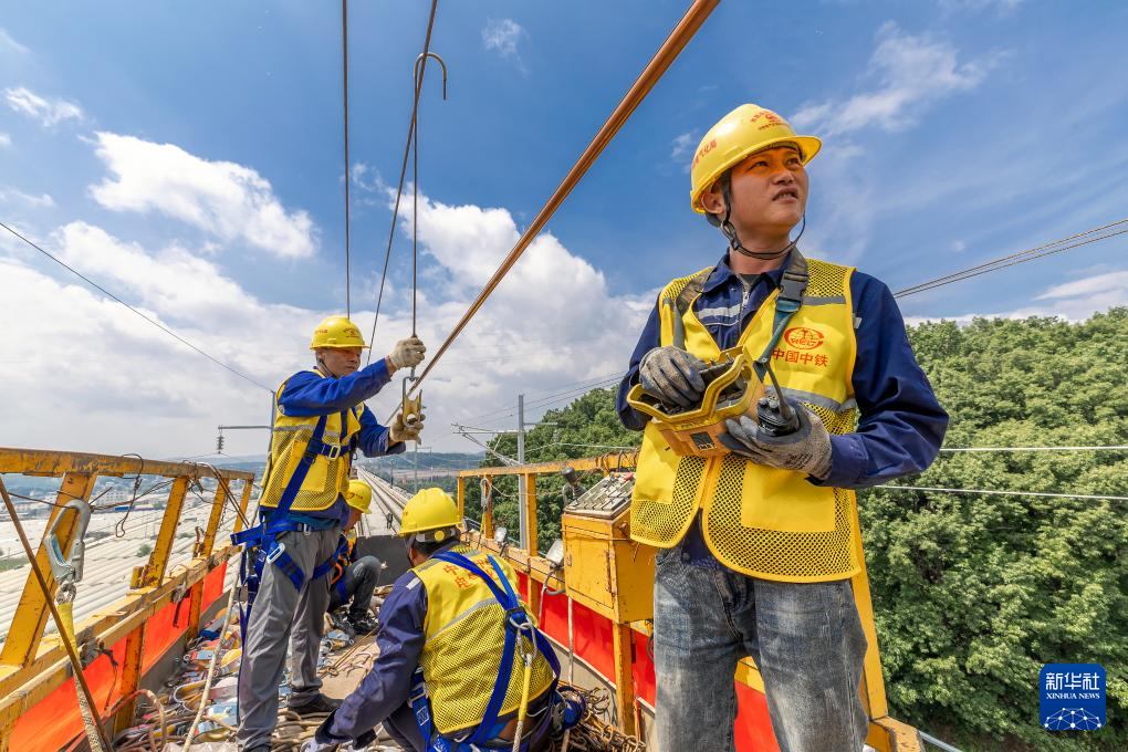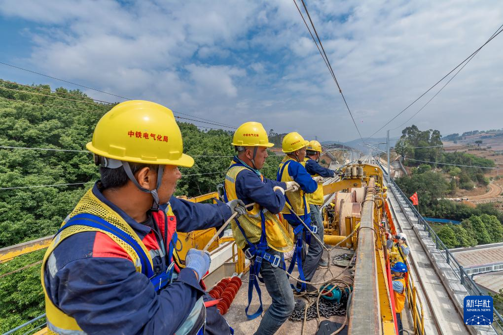 渝昆高铁云南段首条接触网导线成功架设-新华网
