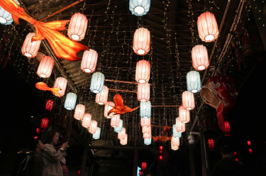 春节假期,浙江省杭州市拱墅区桥西历史文化街区的传统灯笼与“大鱼海棠”主题灯组在夜色中交相辉映,成为市民和游客打卡的热门目的地。