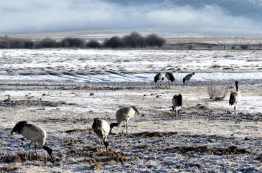 近日,北返迁徙的黑颈鹤在四川省红原县的草原上觅食,这些精灵以其优雅的姿态和高亢的叫声成为草原上的一道亮丽风景线。