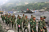 群众泪别抗震救灾官兵 撤离车队一公里路走3小时