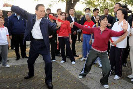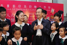 国务院总理温家宝在澳门大炮台花园同市民亲切交流
