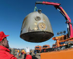 发射之前:正在吊装的“神舟”五号飞船轨道舱
