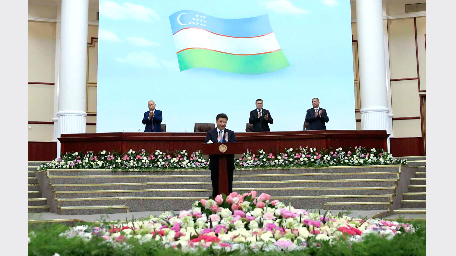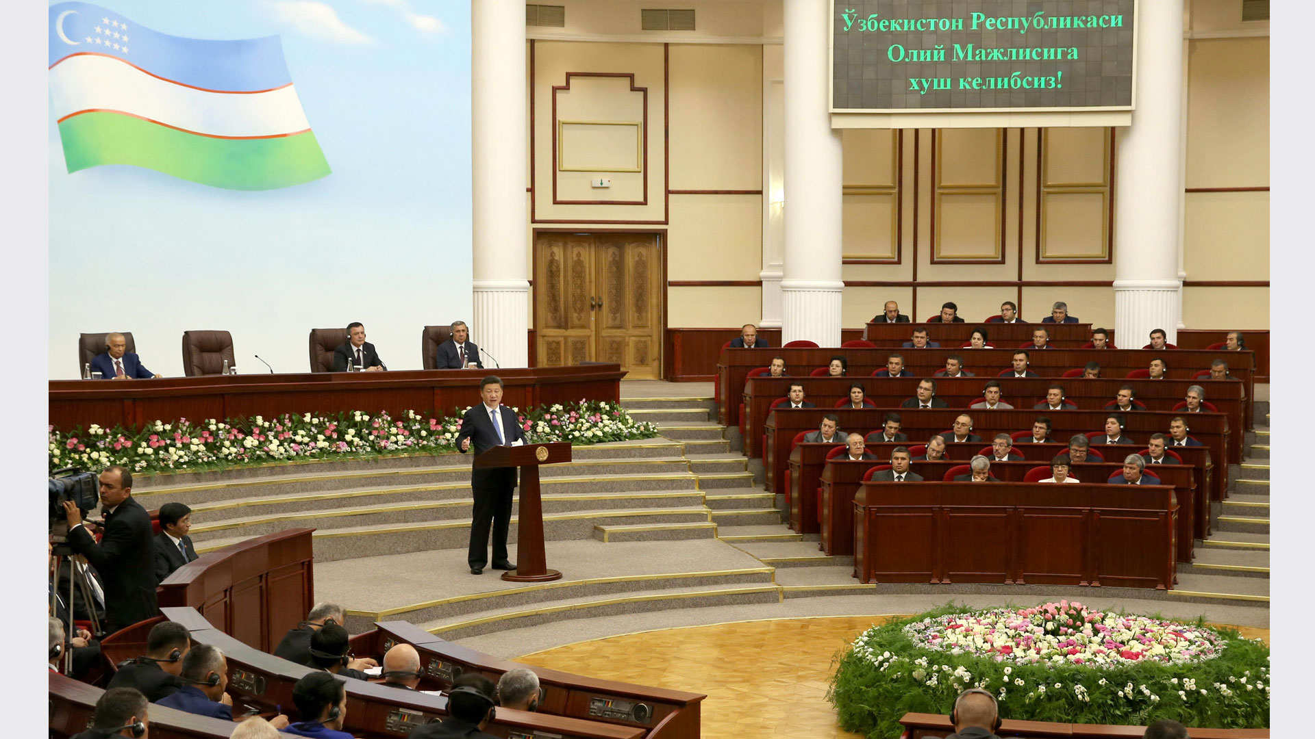 6月22日,国家主席习近平在塔什干乌兹别克斯坦最高会议立法院发表题为《携手共创丝绸之路新辉煌》的重要演讲。新华社记者马占成摄