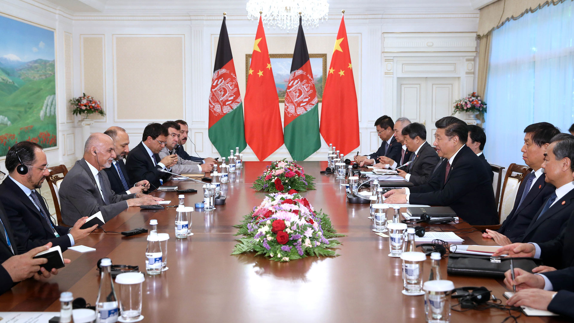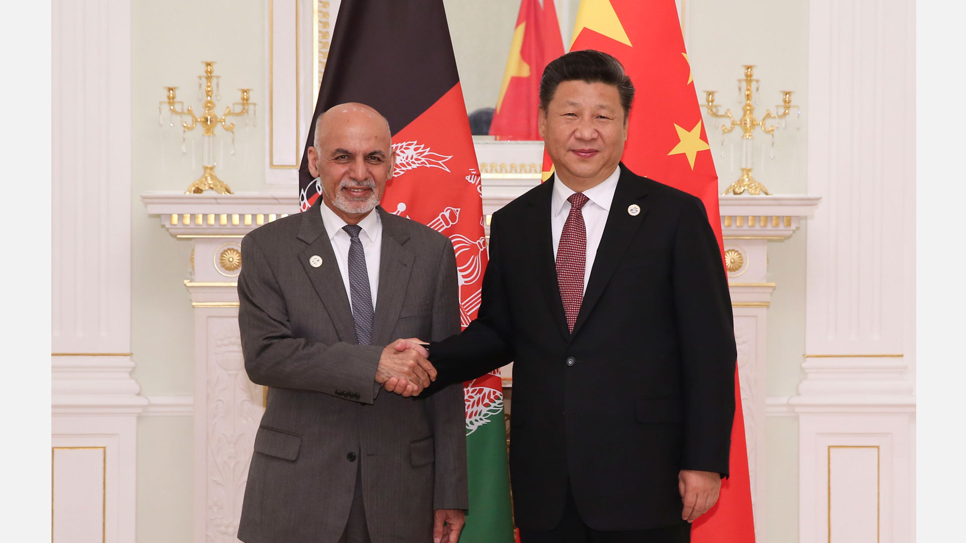 6月24日,国家主席习近平在塔什干会见阿富汗总统加尼。 新华社记者 兰红光 摄
