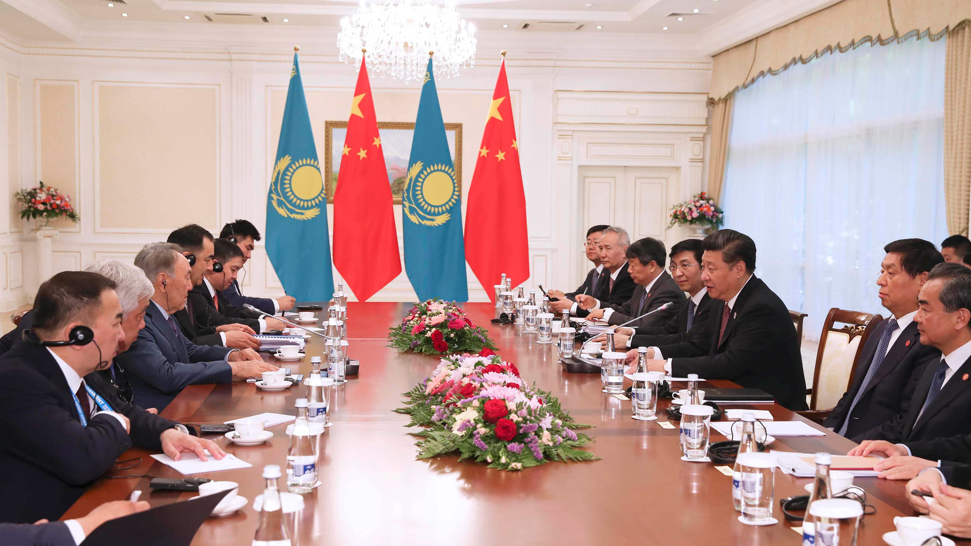 6月24日,国家主席习近平在塔什干会见哈萨克斯坦总统纳扎尔巴耶夫。 新华社记者 兰红光 摄