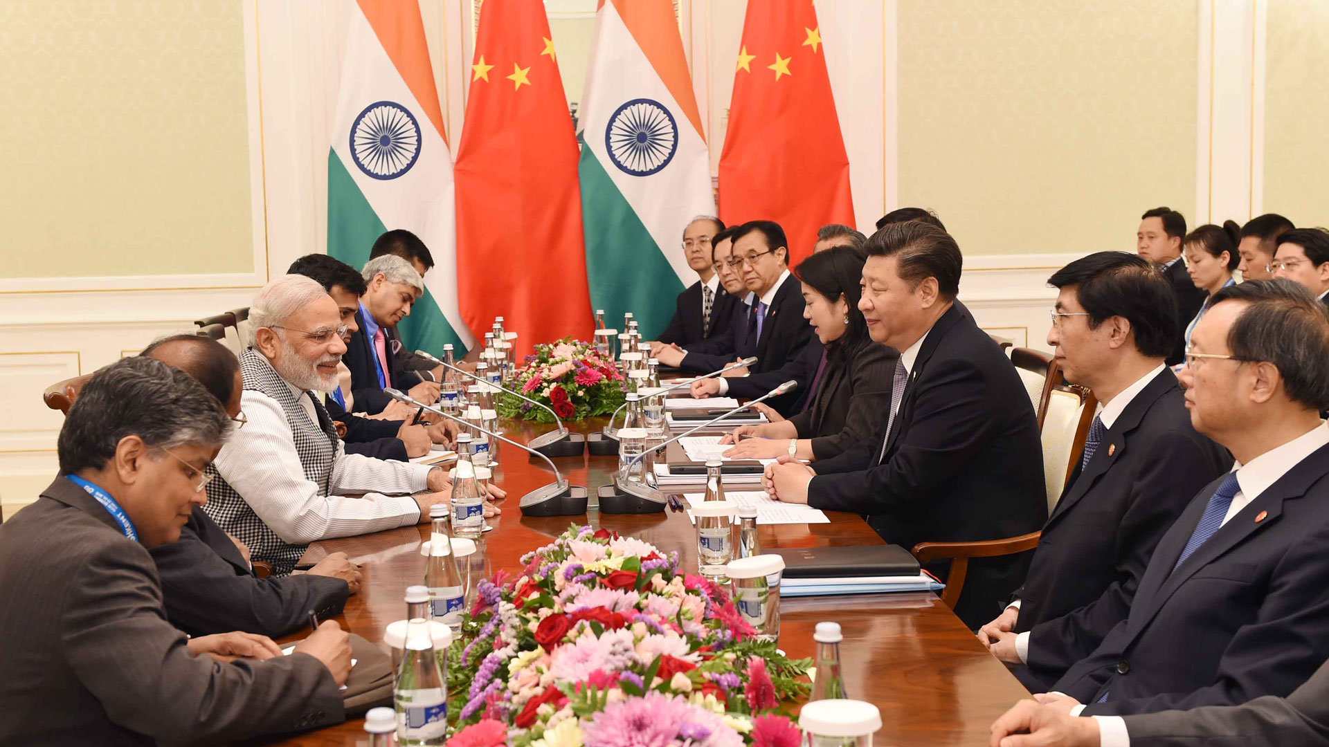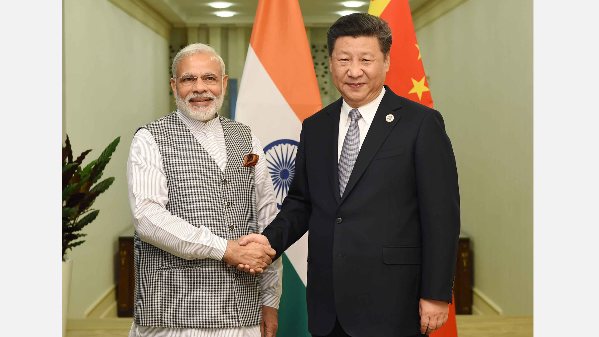 6月23日,国家主席习近平在乌兹别克斯坦塔什干会见印度总理莫迪。新华社记者 饶爱民摄