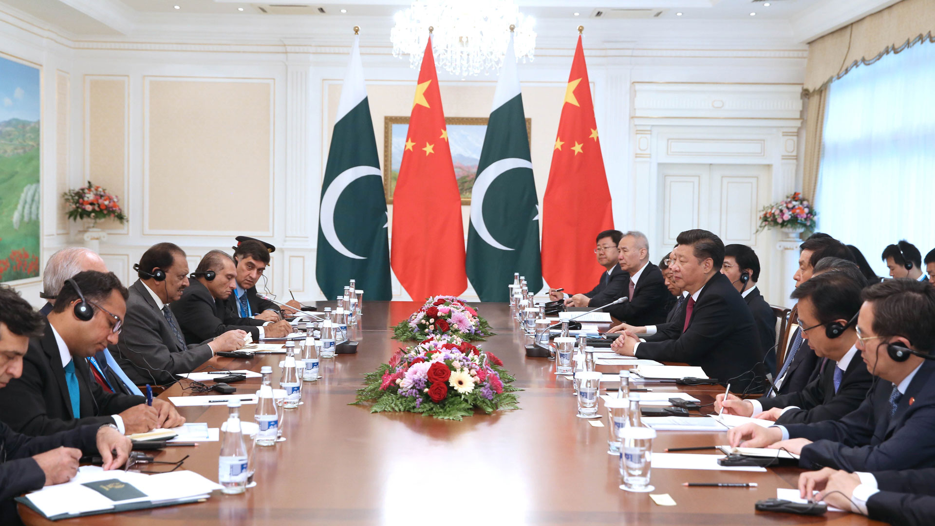 6月23日,国家主席习近平在塔什干会见巴基斯坦总统侯赛因。新华社记者马占成摄