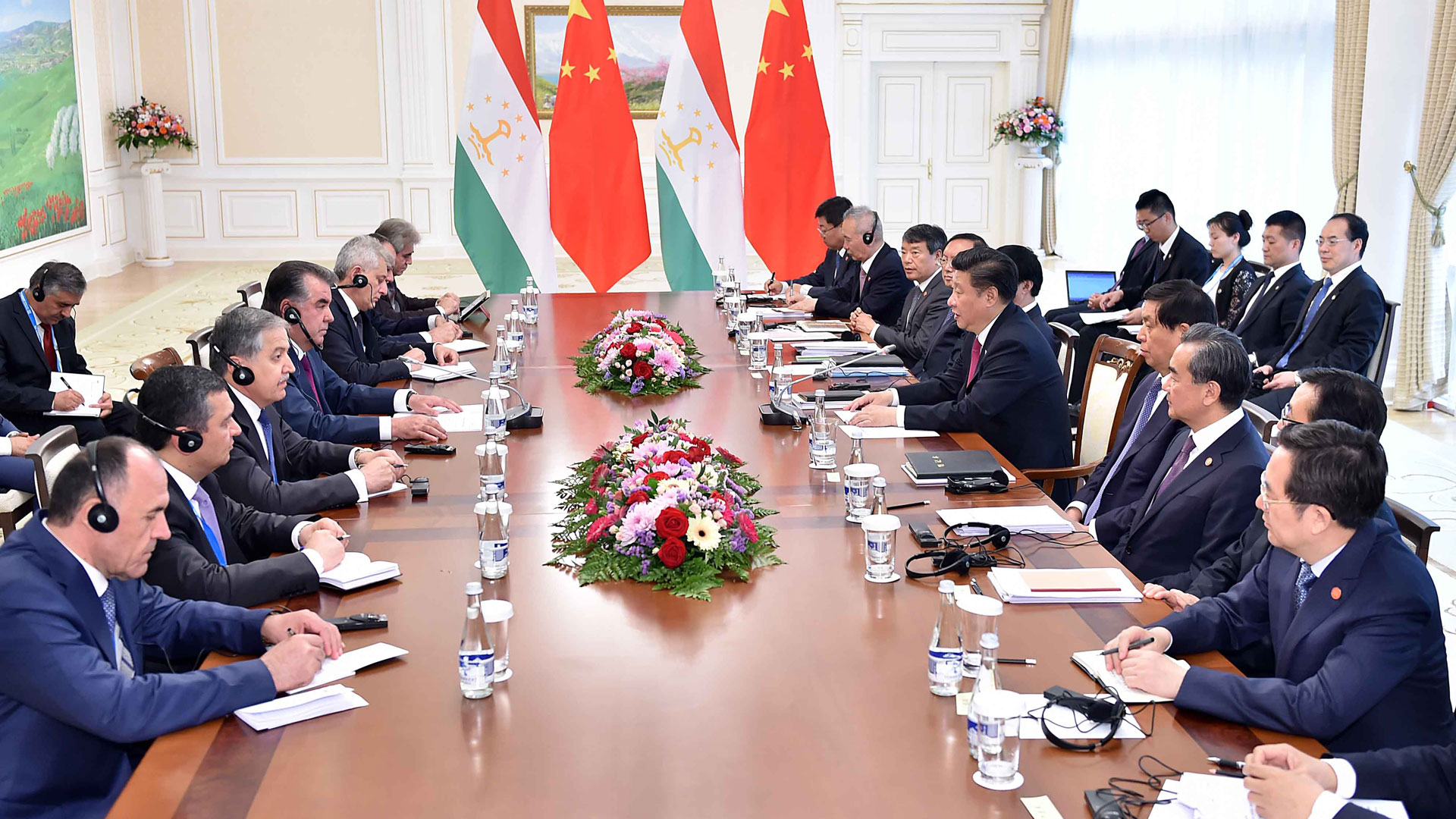 6月23日,国家主席习近平在塔什干会见塔吉克斯坦总统拉赫蒙。新华社记者李涛摄