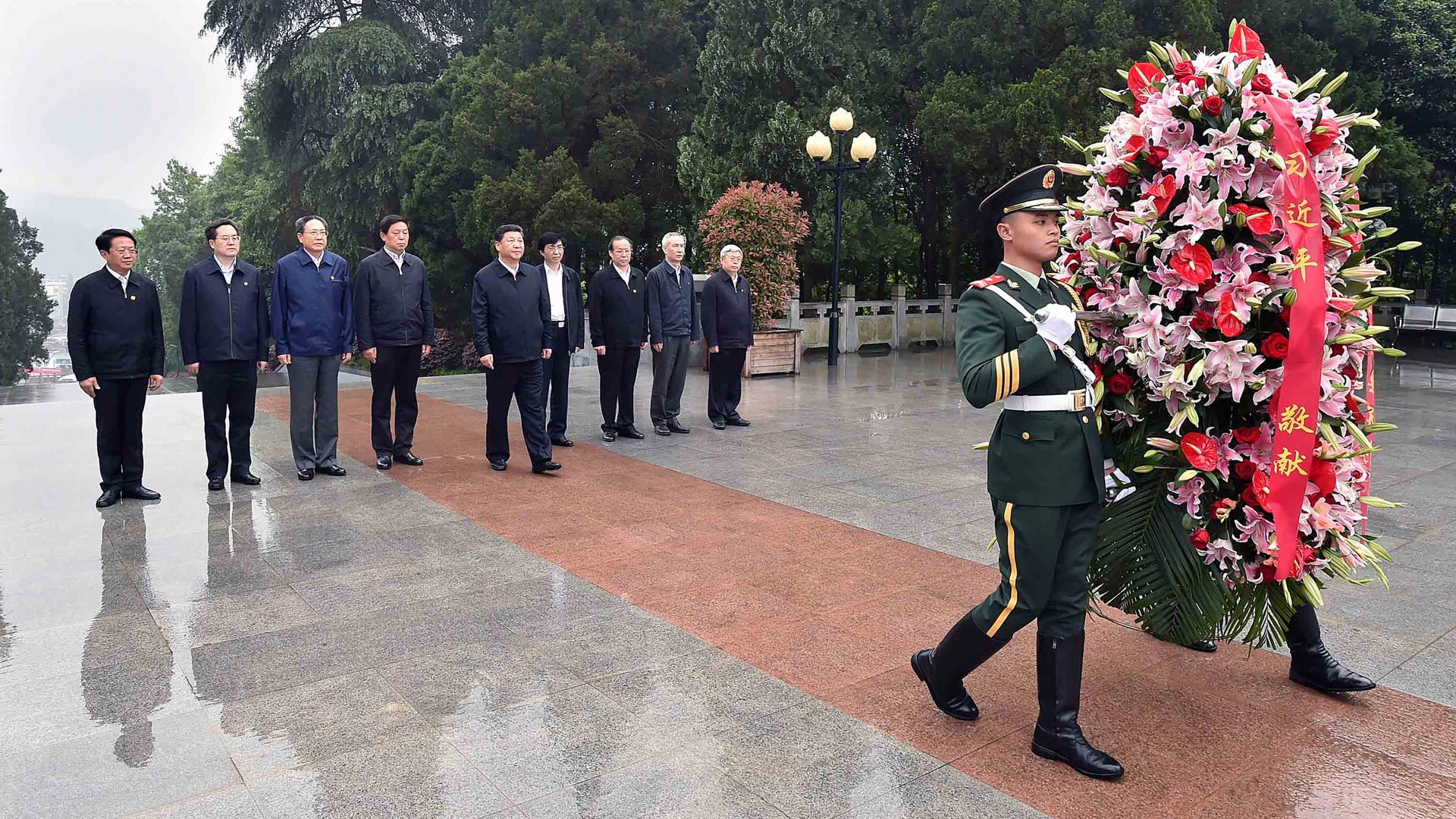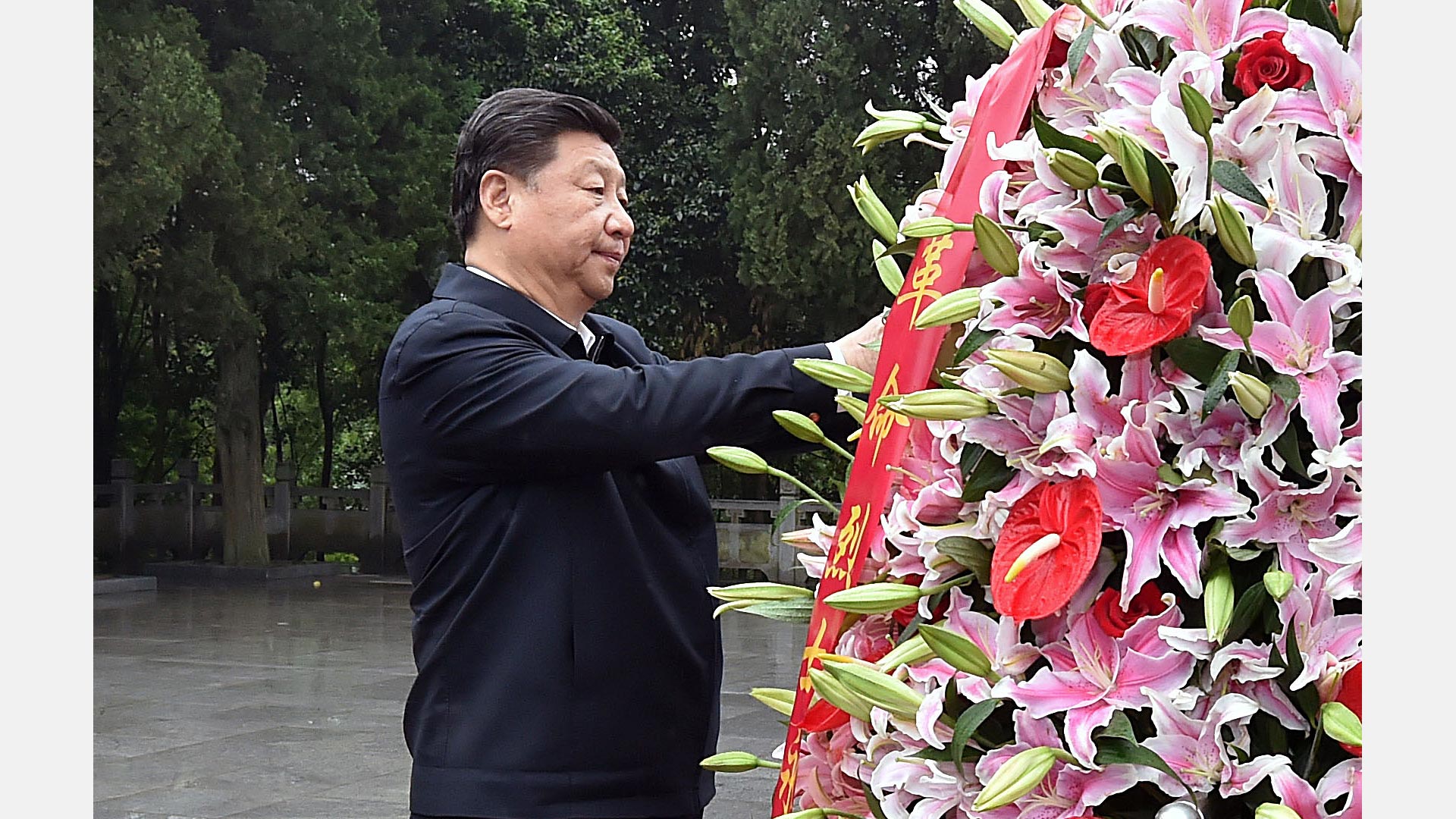 4月24日至27日,中共中央总书记、国家主席、中央军委主席习近平在安徽调研。这是4月24日上午,习近平在六安市金寨县红军广场向革命烈士纪念塔敬献花篮。 新华社记者李涛摄