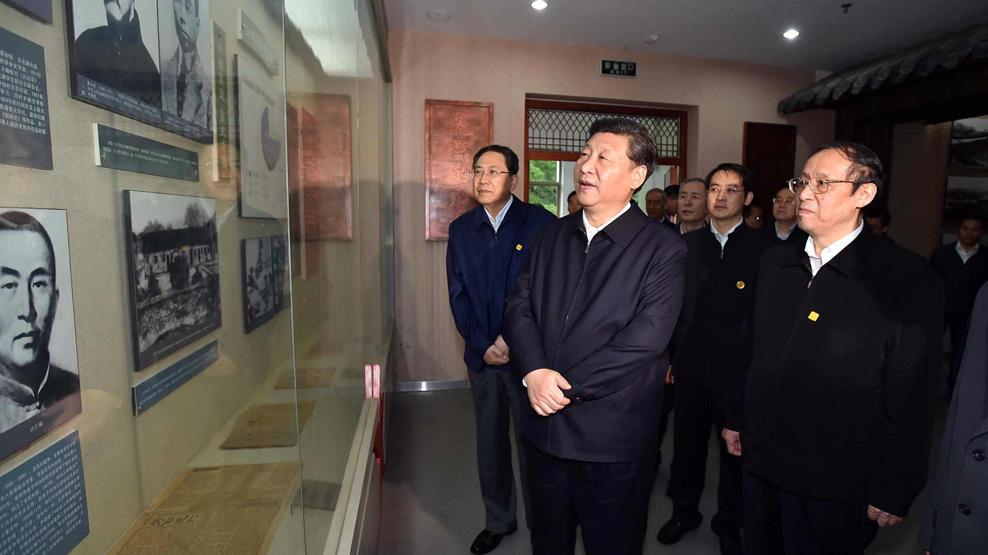4月24日至27日,中共中央总书记、国家主席、中央军委主席习近平在安徽调研。这是4月24日上午,习近平在六安市金寨县参观金寨县革命博物馆。 新华社记者李涛摄