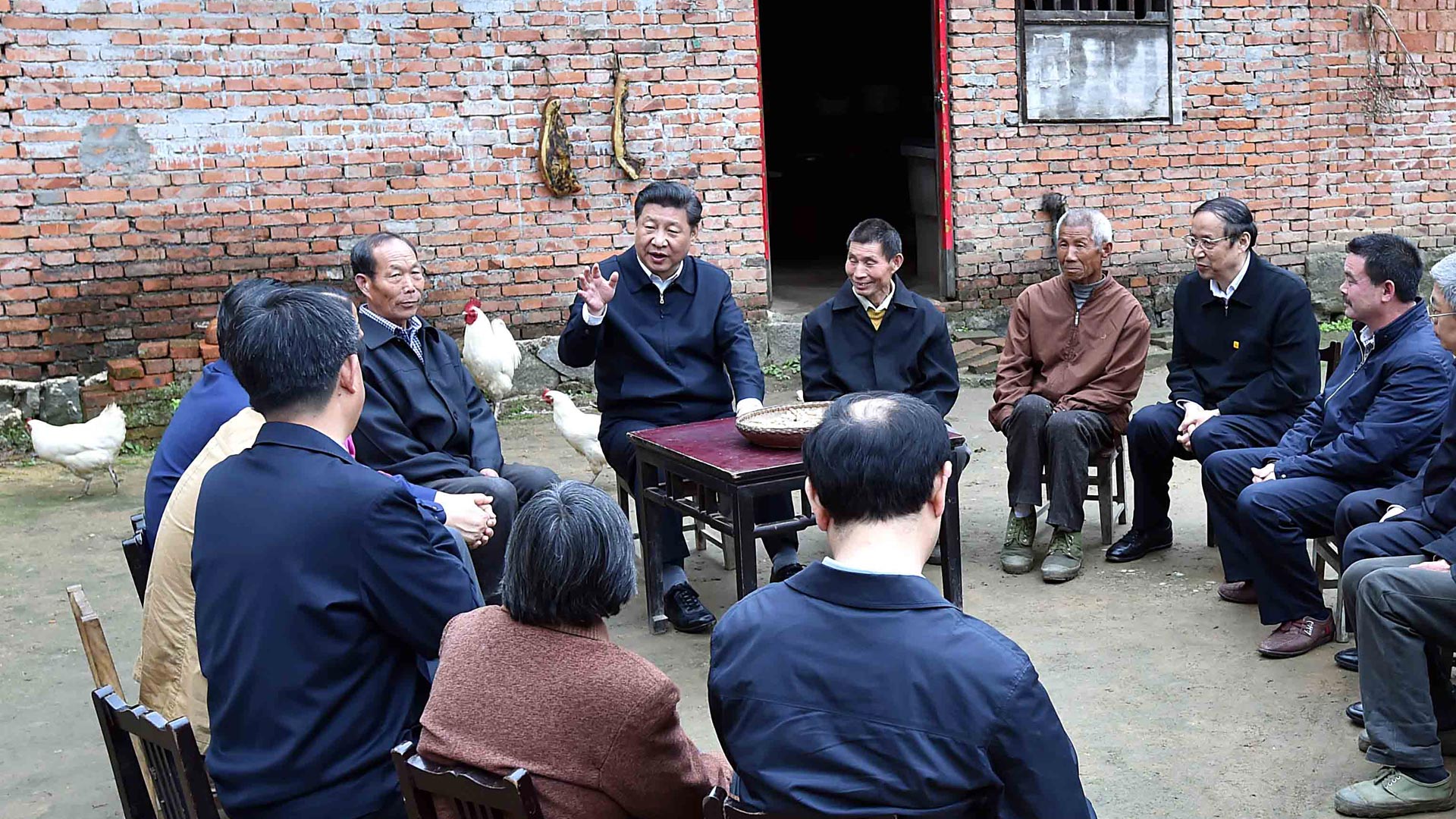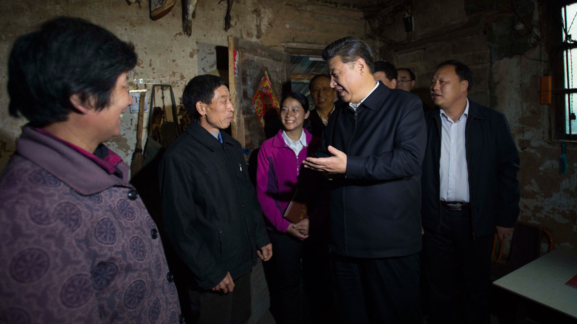 4月24日至27日,中共中央总书记、国家主席、中央军委主席习近平在安徽调研。这是4月24日下午,习近平在六安市金寨县花石乡大湾村向村民们了解脱贫工作情况。 新华社记者李学仁摄