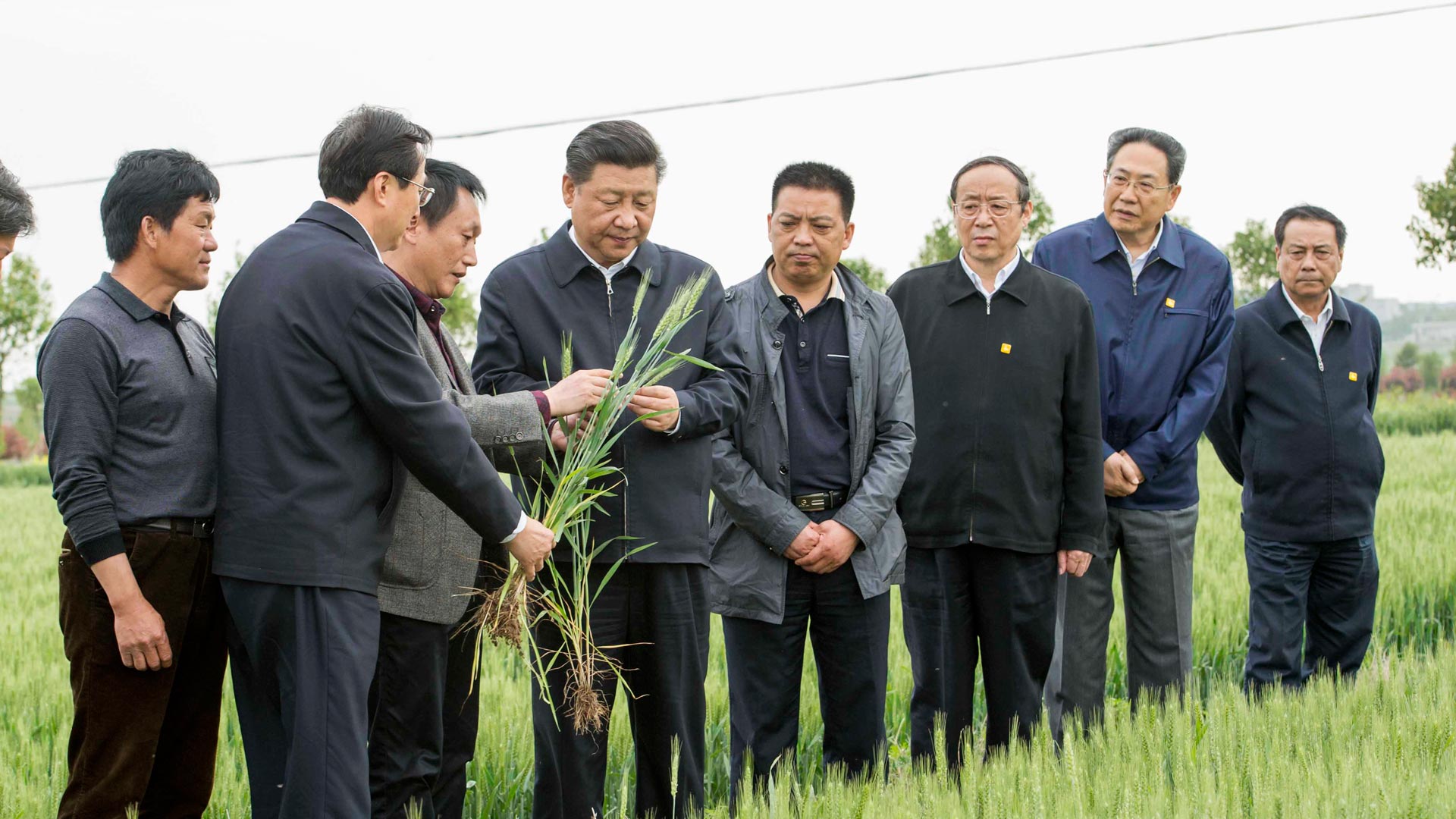 4月24日至27日,中共中央总书记、国家主席、中央军委主席习近平在安徽调研。这是4月25日下午,习近平在滁州市凤阳县小岗村察看小麦长势。 新华社记者李学仁摄