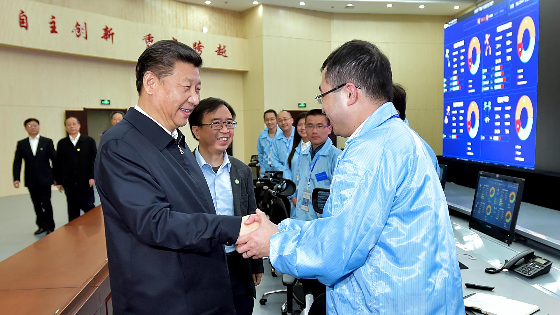 4月24日至27日,中共中央总书记、国家主席、中央军委主席习近平在安徽调研。这是4月26日上午,习近平在中国科技大学先进技术研究院观看高新技术企业科技成果展示。 新华社记者李学仁摄