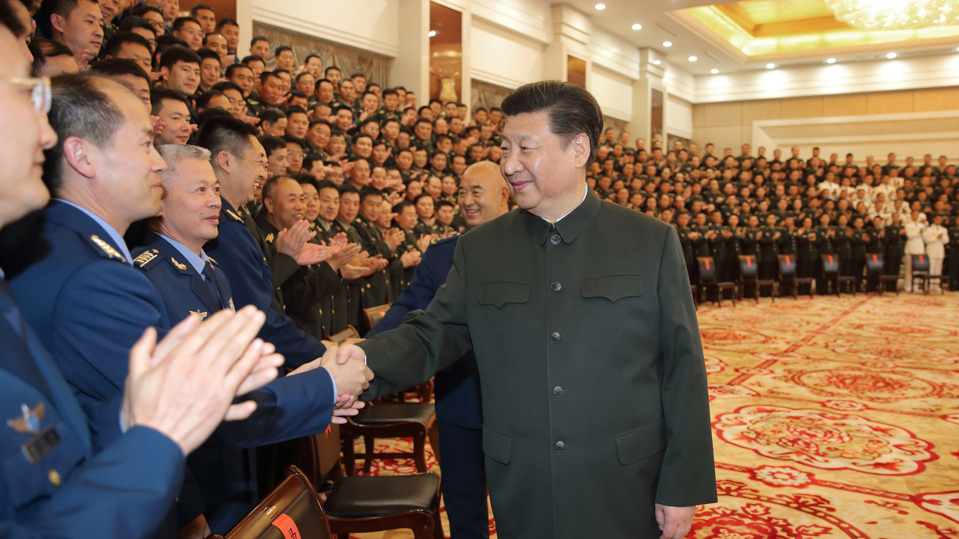 4月24日至27日,中共中央总书记、国家主席、中央军委主席习近平在安徽调研。这是4月26日,习近平在合肥亲切接见驻皖部队师以上干部和作战团单位主官,代表党中央和中央军委向驻皖部队全体官兵致以诚挚问候。新华社记者李刚摄