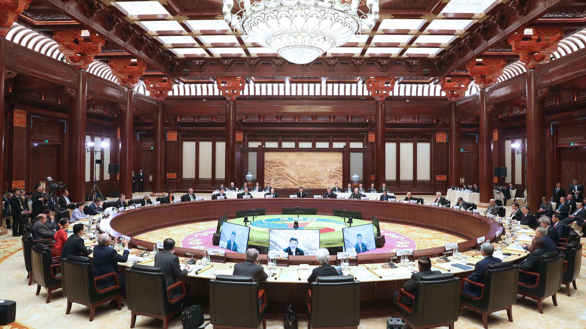 5月15日,“一带一路”国际合作高峰论坛圆桌峰会在北京雁栖湖国际会议中心举行,国家主席习近平主持会议并致开幕辞。新华社记者 鞠鹏 摄