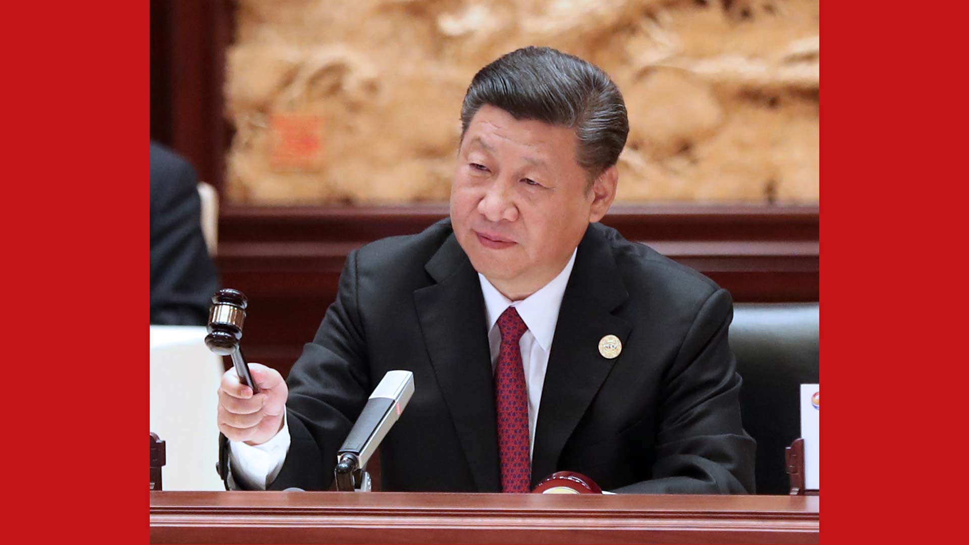 5月15日,“一带一路”国际合作高峰论坛圆桌峰会在北京雁栖湖国际会议中心举行,国家主席习近平主持会议并致开幕辞。这是习近平宣布会议开始。新华社记者 马占成 摄