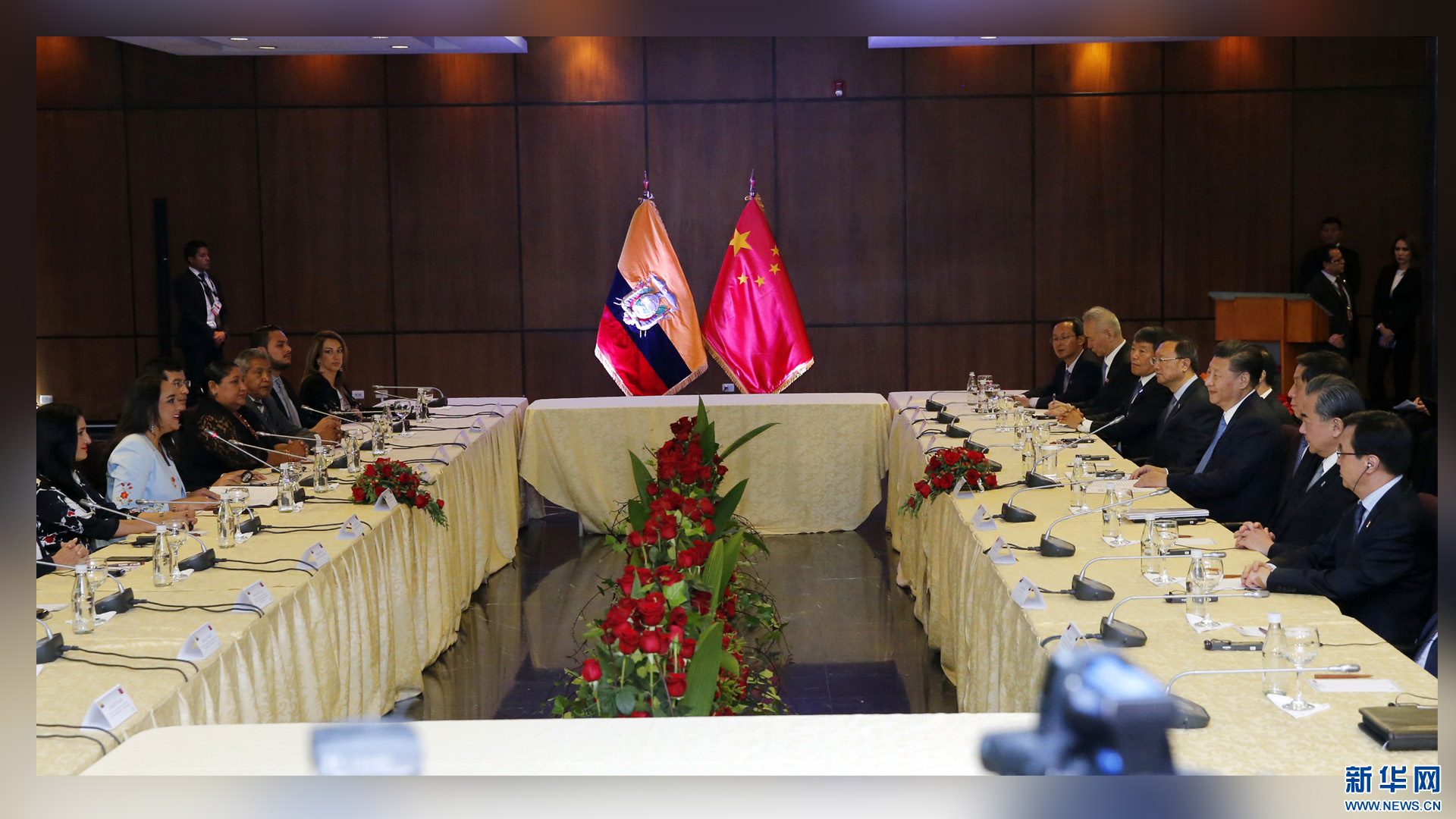 当地时间11月17日,国家主席习近平在基多同厄瓜多尔总统科雷亚举行会谈。 新华社记者 兰红光 摄2016-11-18