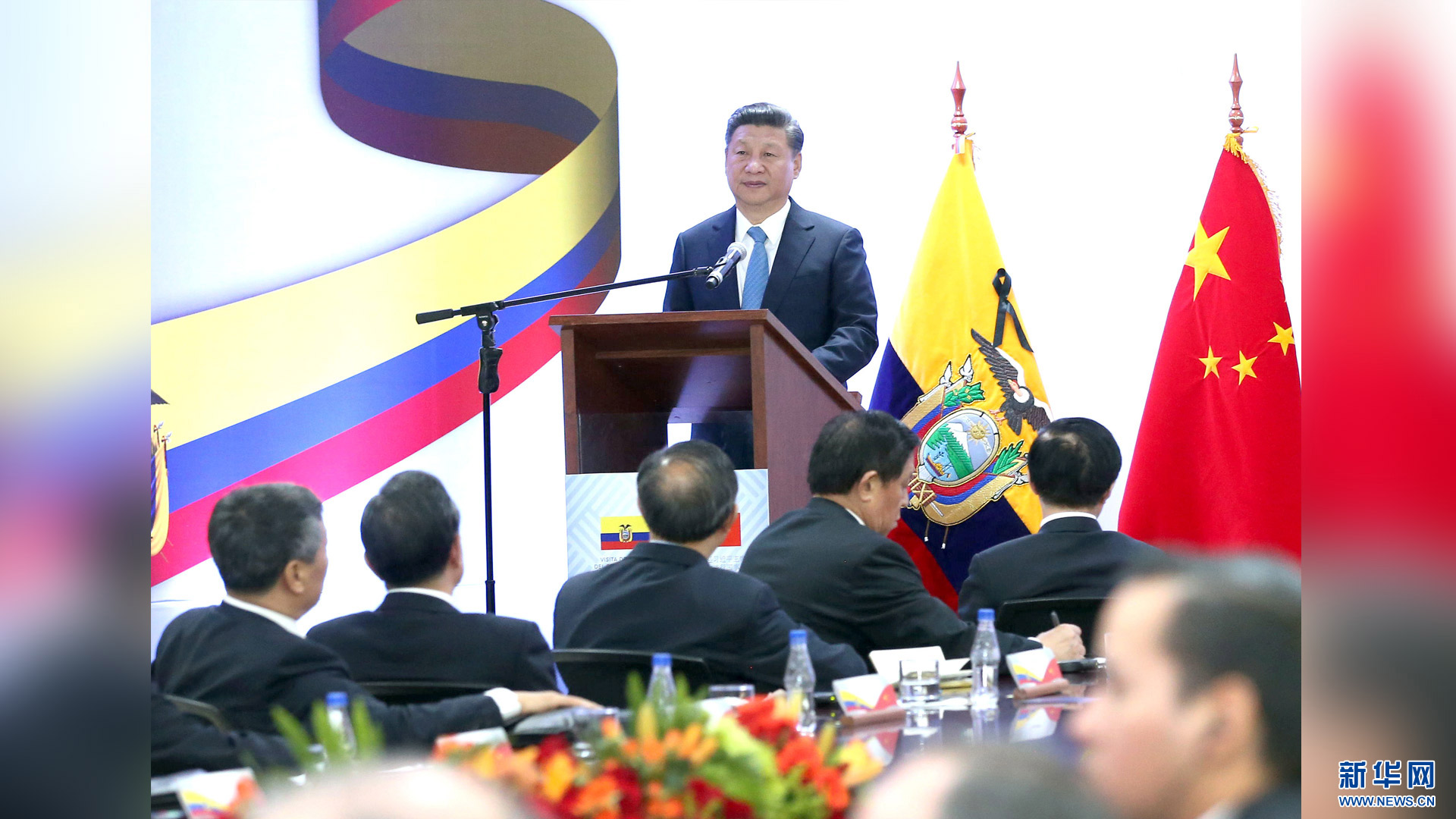 当地时间11月18日,国家主席习近平在基多同厄瓜多尔总统科雷亚共同出席中方援建的厄瓜多尔公共安全应急指挥中心联合实验室揭牌仪式,乔内医院奠基、科卡科多-辛克雷水电站竣工发电视频连线活动。这是习近平出席活动后致辞。新华社记者 马占成 摄2016-11-19