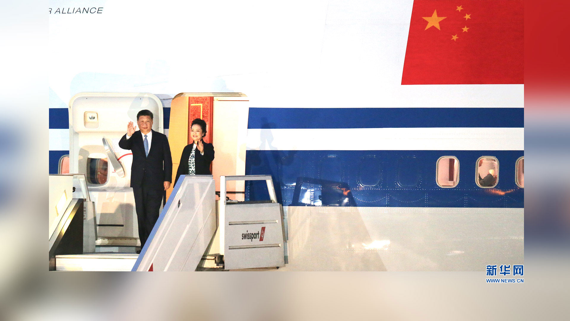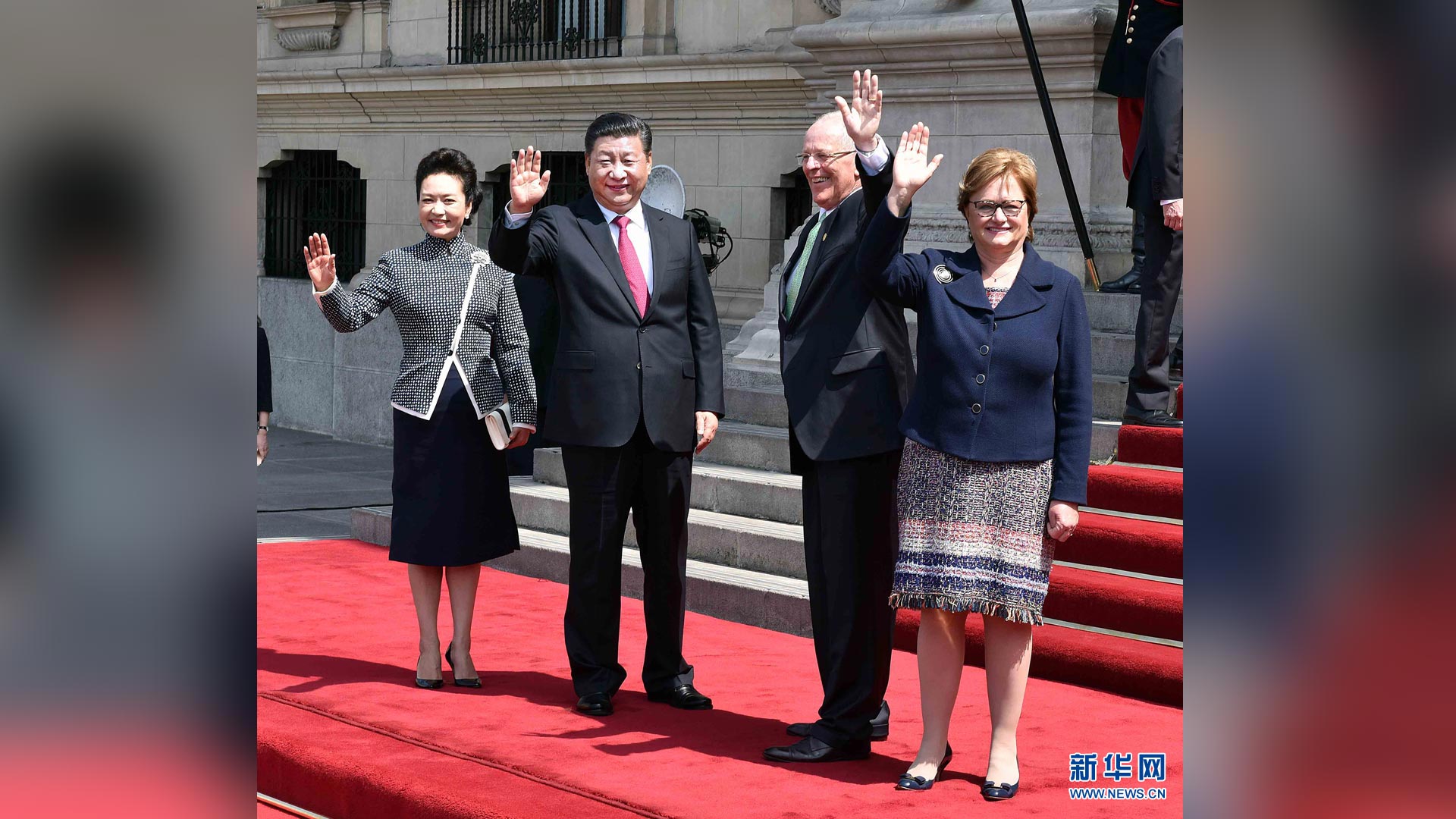 当地时间11月18日,国家主席习近平抵达利马,出席亚太经合组织第二十四次领导人非正式会议并对秘鲁共和国进行国事访问。习近平和夫人彭丽媛受到秘鲁副总统阿劳斯等热情迎接。新华社记者 鞠鹏 摄2016-11-20