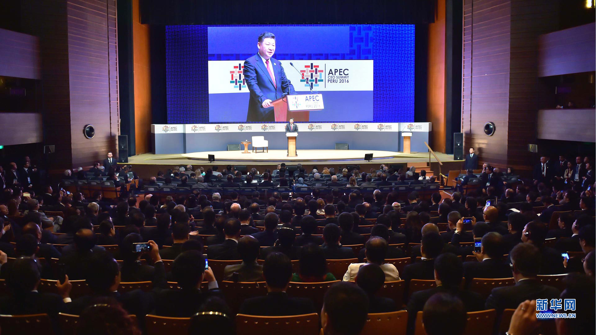 11月19日,2016年亚太经合组织工商领导人峰会在秘鲁利马举行。国家主席习近平应邀出席并发表题为《深化伙伴关系 增强发展动力》的主旨演讲。 新华社记者 李涛 摄2016-11-20