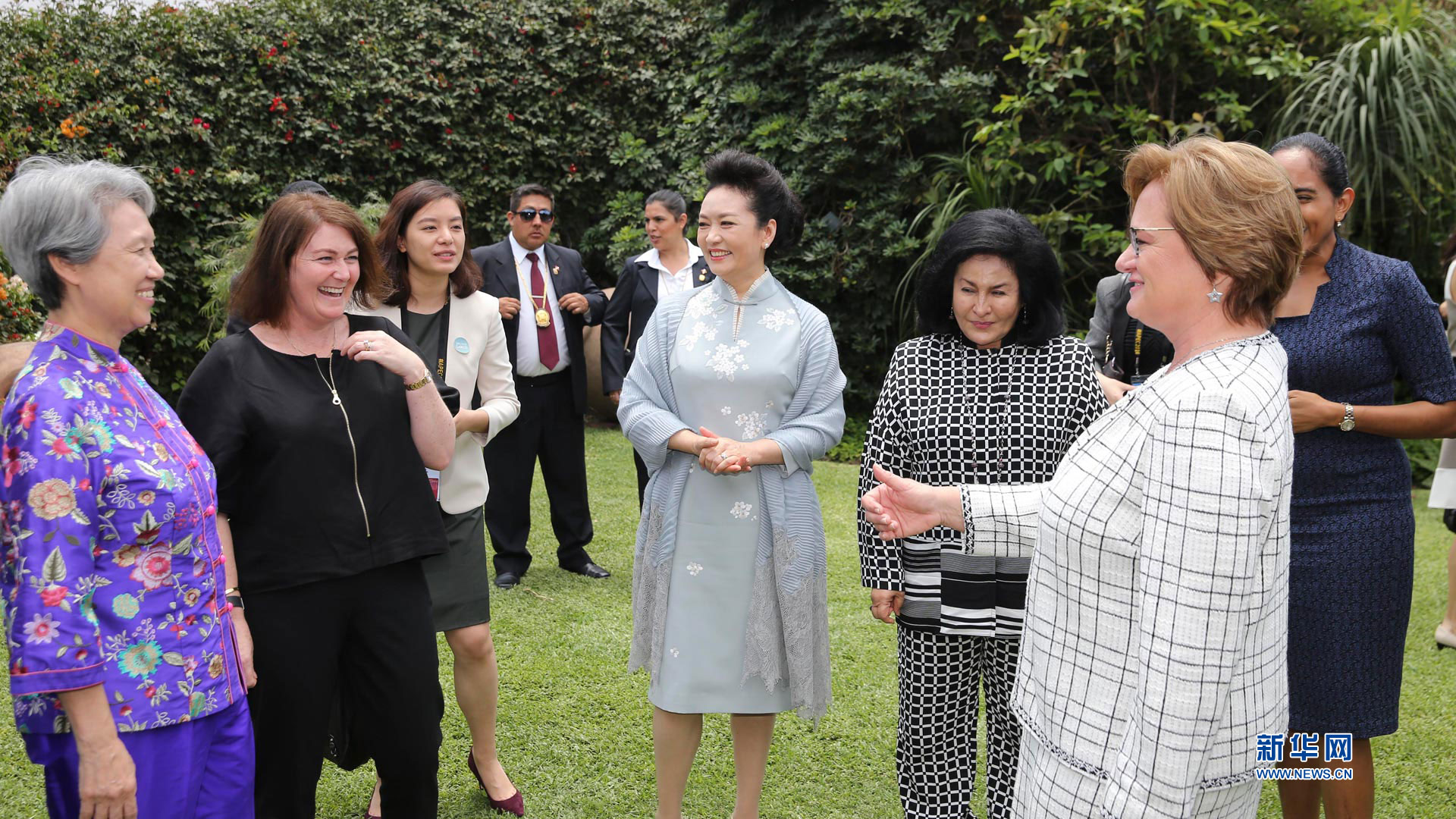 当地时间11月19日,应秘鲁总统夫人兰格邀请,国家主席习近平夫人彭丽媛在利马同参加亚太经合组织第二十四次领导人非正式会议的部分经济体领导人配偶共同参观拉尔科博物馆。新华社记者 丁林 摄2016-11-20