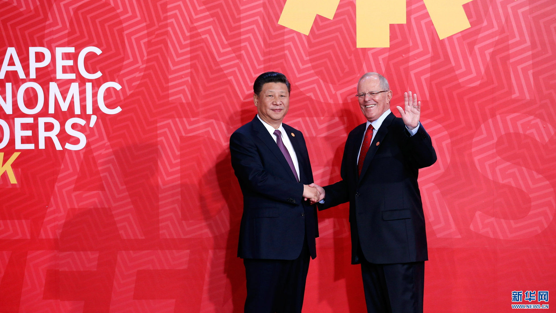 11月20日,亚太经合组织第二十四次领导人非正式会议在秘鲁利马举行。国家主席习近平出席并发表题为《面向未来开拓进取促进亚太发展繁荣》的重要讲话。这是会议开始前,习近平受到秘鲁总统库琴斯基的热情迎接。 新华社记者 庞兴雷 摄2016-11-21