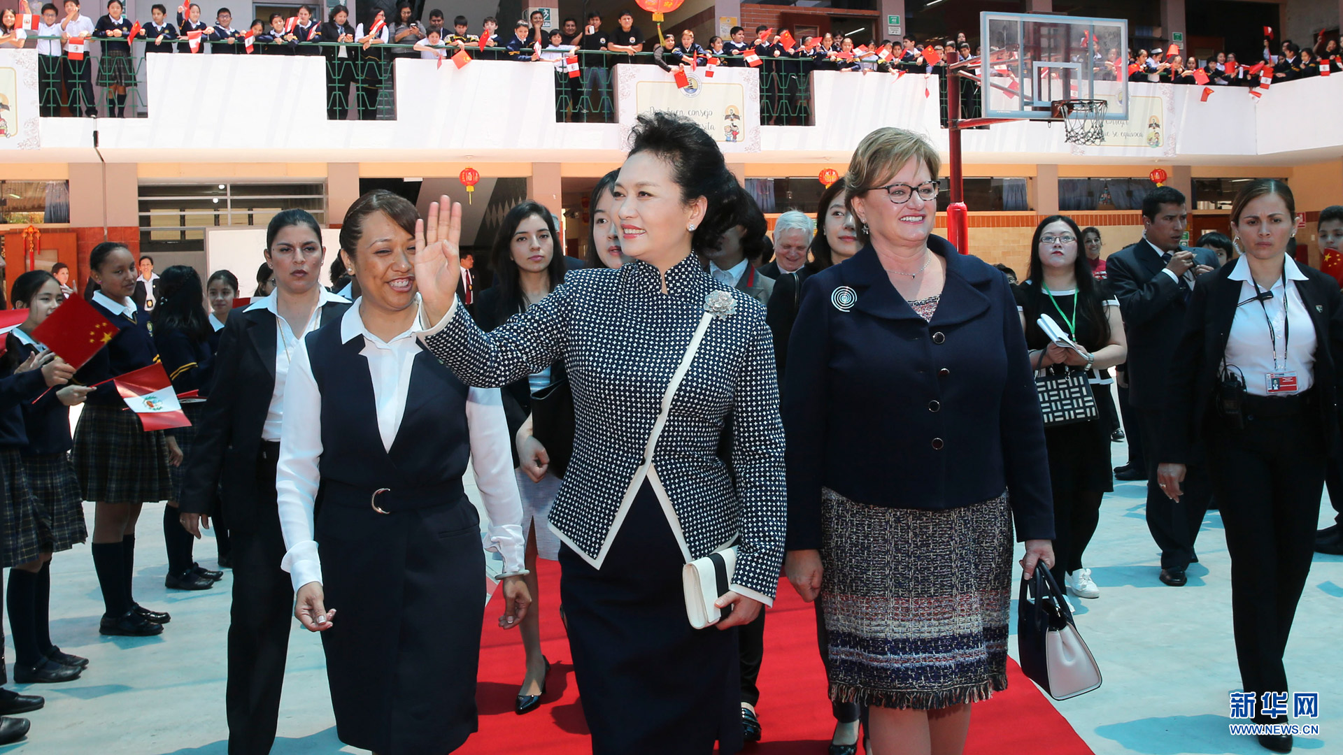 11月21日,国家主席习近平夫人彭丽媛在利马参观若望二十三世秘中学校。 新华社记者丁林摄2016-11-22