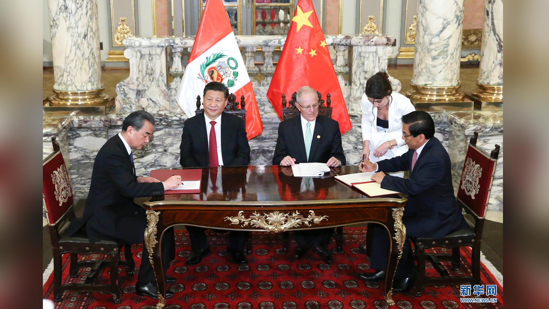 11月21日,国家主席习近平在利马同秘鲁总统库琴斯基举行会谈。会谈后,两国元首见证《中华人民共和国政府与秘鲁共和国政府2016年至2021年共同行动计划》等文件的签署。新华社记者 庞兴雷 摄2016-11-23