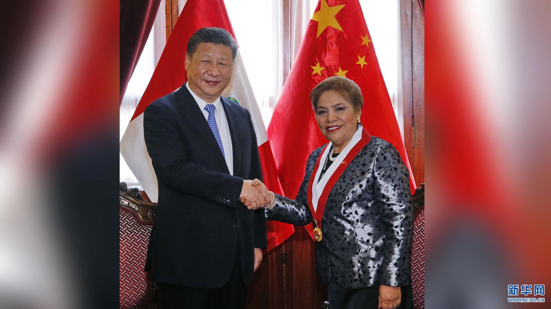 11月21日,国家主席习近平在利马会见秘鲁国会主席萨尔加多。新华社记者 鞠鹏 摄2016-11-23