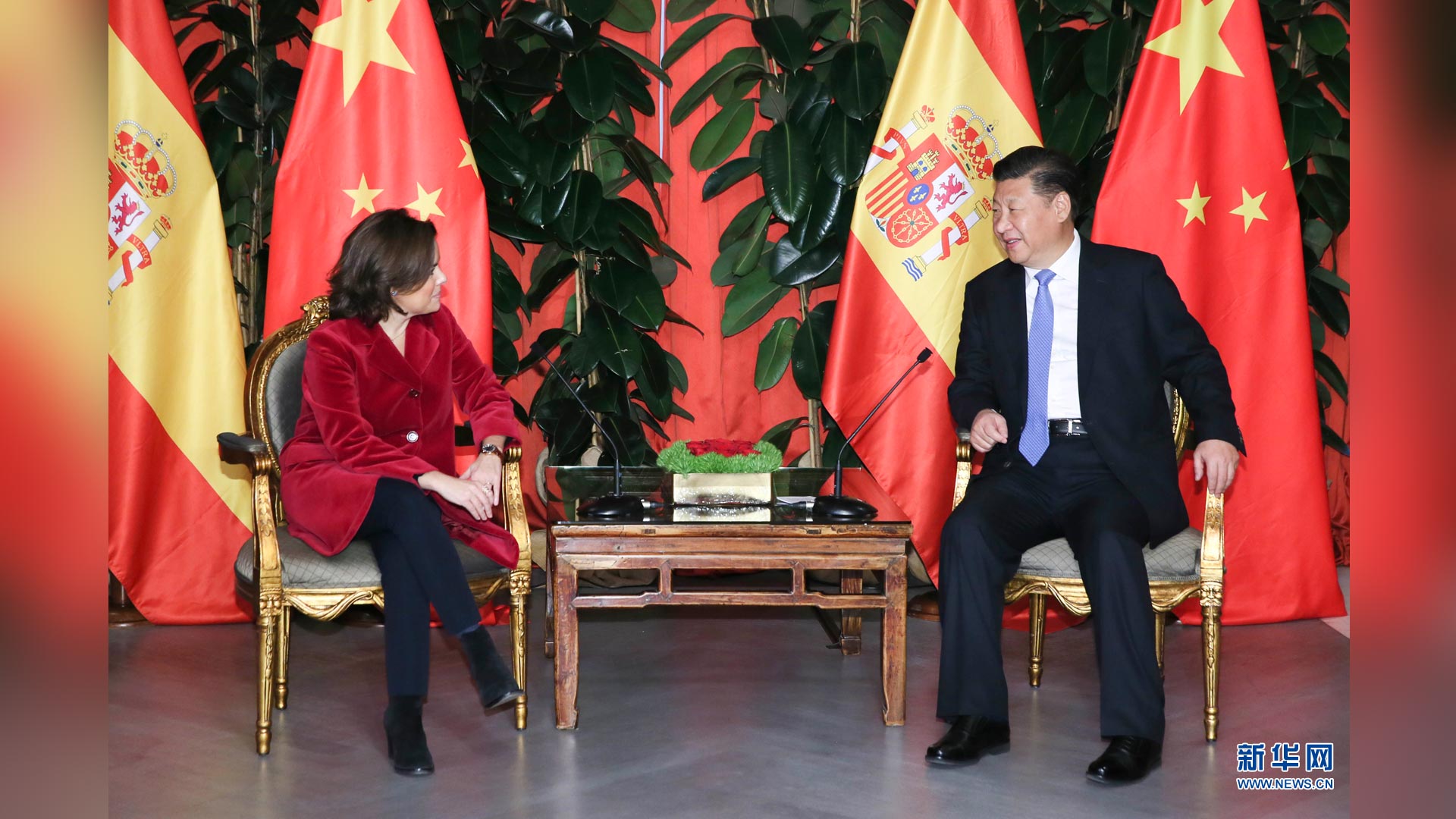 11月24日,国家主席习近平在西班牙大加那利岛会见西班牙副首相萨恩斯。 新华社记者 兰红光 摄2016-11-25