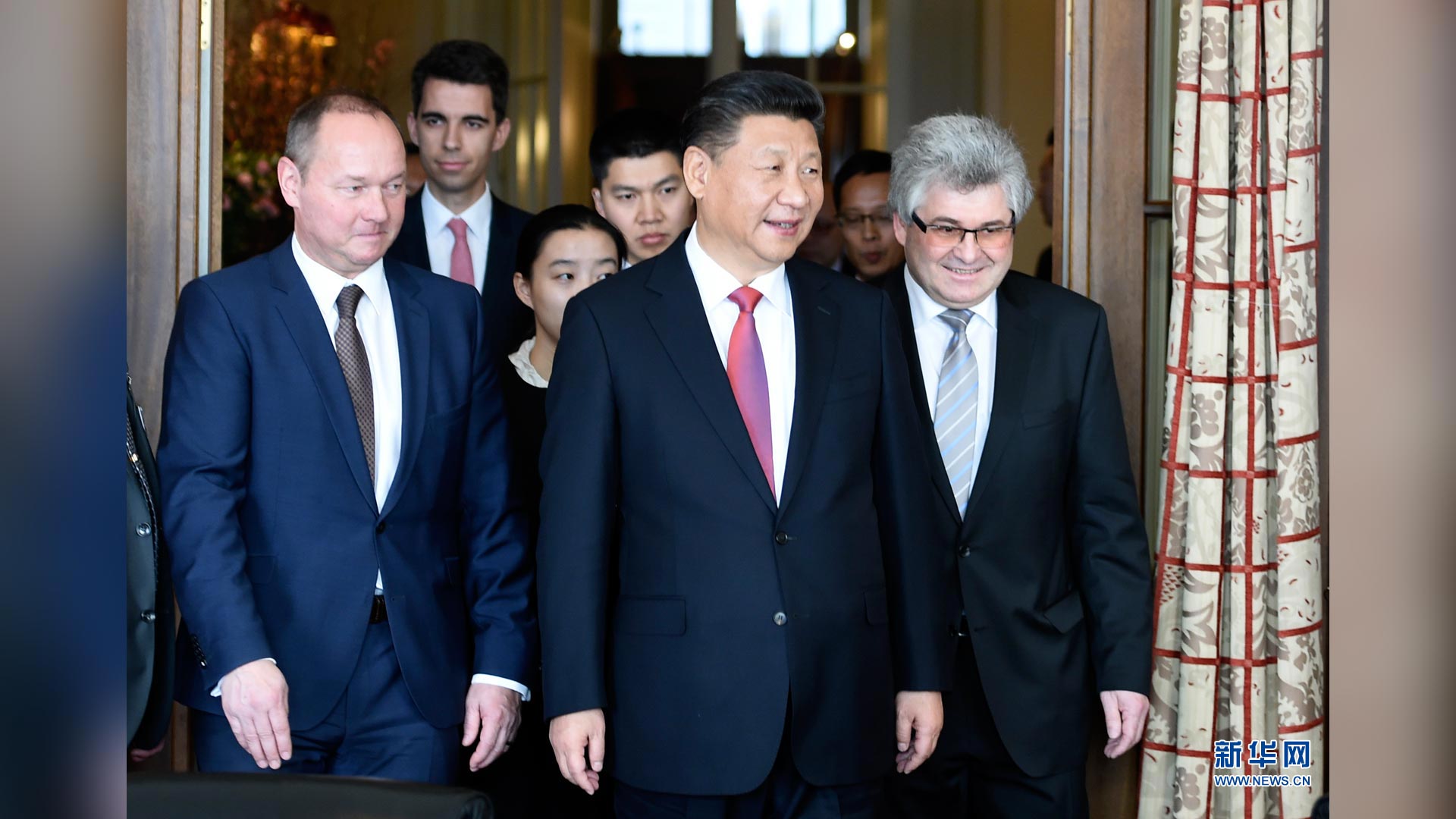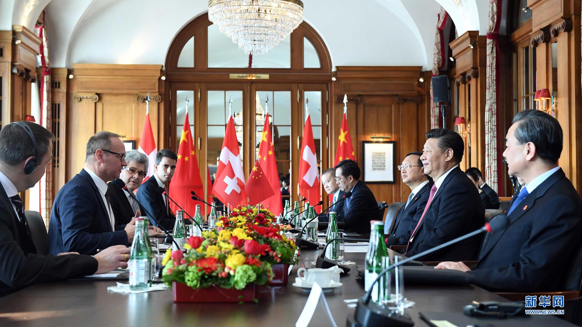 1月16日,国家主席习近平在伯尔尼会见瑞士联邦国民院议长施塔尔和联邦院议长比绍夫贝尔格。 新华社记者 谢环驰 摄2017-01-17