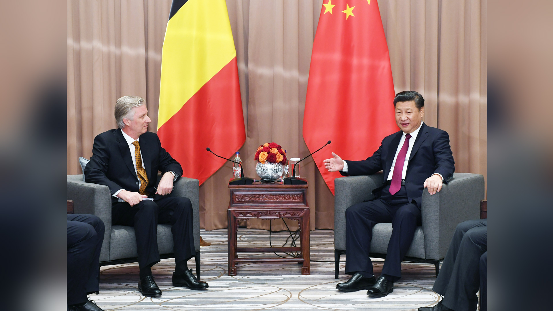 1月17日,国家主席习近平在瑞士达沃斯会见比利时国王菲利普。新华社记者 饶爱民 摄2017-01-18