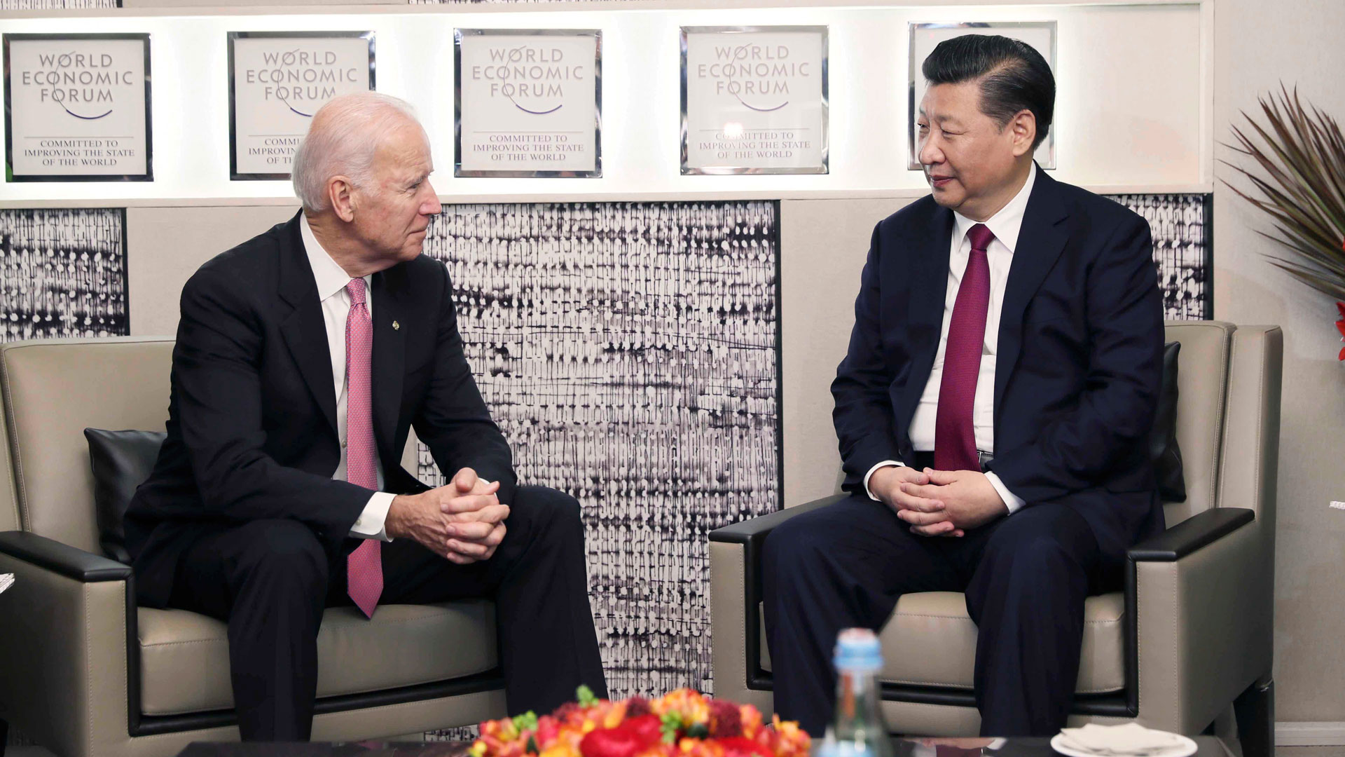 1月17日,国家主席习近平在瑞士达沃斯会见美国副总统拜登。新华社记者 兰红光 摄2017-01-18
